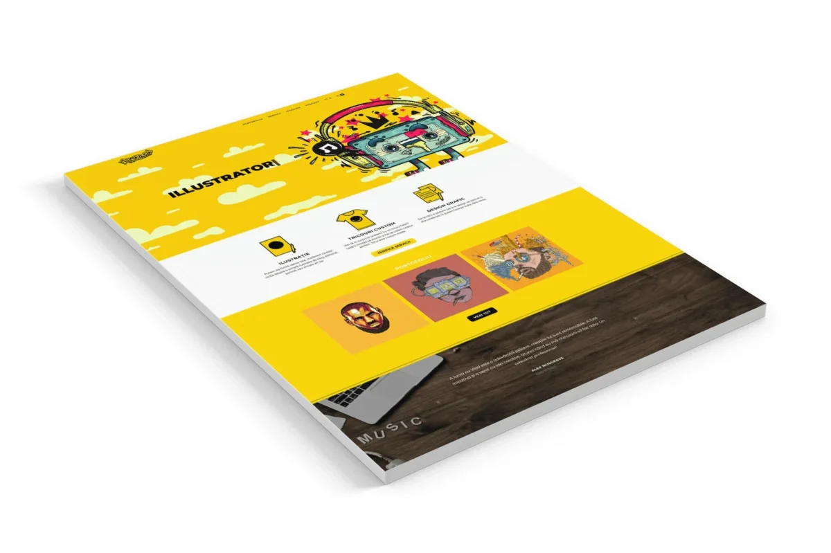 Notă importantă: Platforma eCommerce pe care am construit-o a funcționat impecabil și și-a atins obiectivele, punând bazele succesului ulterior al artistului. Pe măsură ce brandul său a crescut exponențial, modelul de business a evoluat de la vânzarea de produse la proiecte de anvergură, iar site-ul său actual reflectă această nouă direcție. Proiectul prezentat aici este o mărturie a fundației de succes pe care am construit-o împreună.